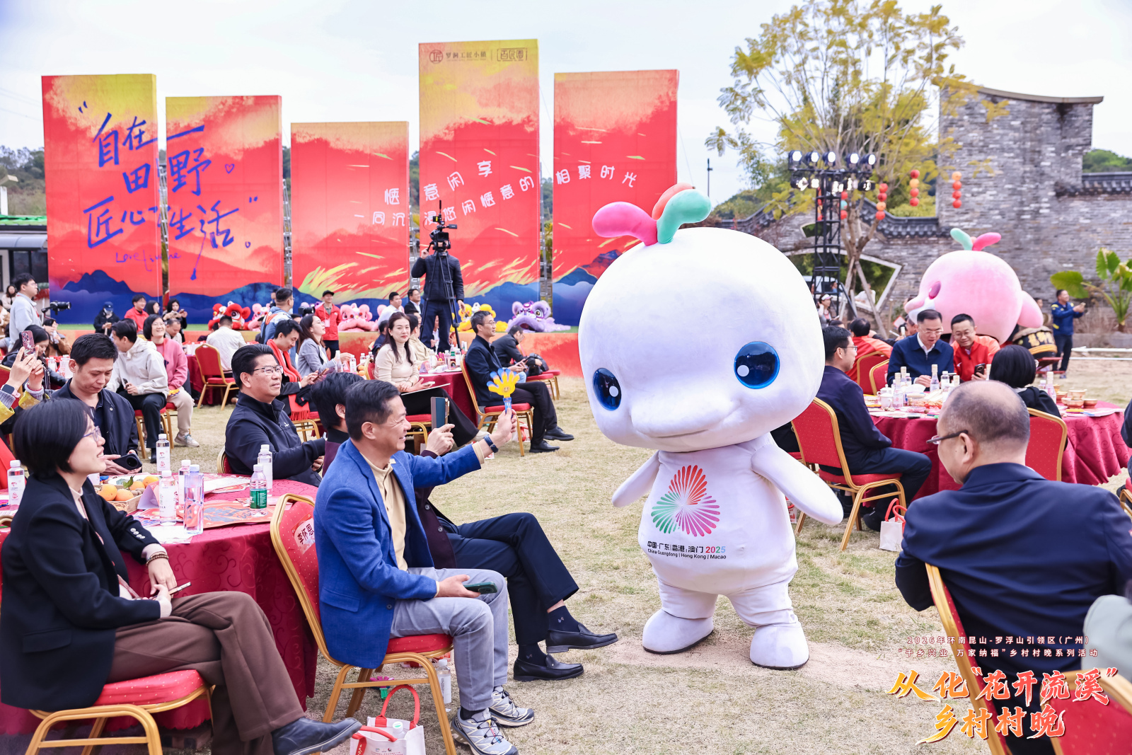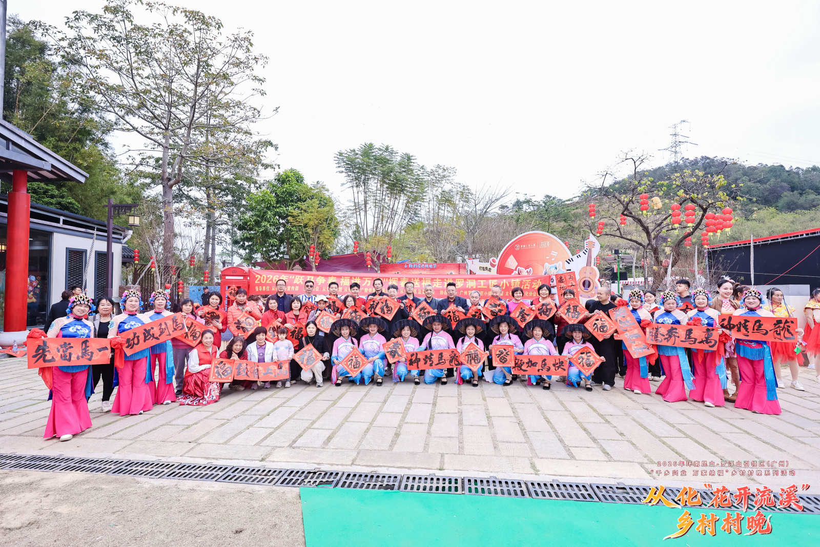 2月7日下午,从化区江埔街罗洞工匠小镇广乐府草坪前热闹非凡,欢声笑语不断。2026年环南昆山—罗浮山引领区(广州)“千乡兴业 万家纳福”乡村村晚系列活动——从化“花开流溪”乡村村晚文艺演出在这里举办,为村民们带来一场多元化的文化盛宴。本次村晚由广州市“百县千镇万村高质量发展工程”指挥部办公室、广州市文化广电旅游局联合从化区人民政府主办,以“两山融韵贺新岁 村晚聚势兴乡村”为核心脉络,为群众送上兼具乡土味、文化味与年味的沉浸式新春体验。